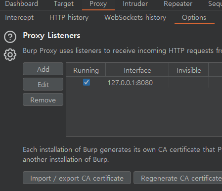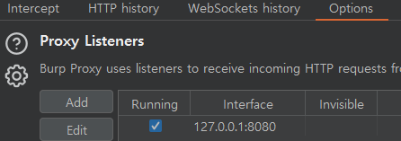 8080을 쓰는 이유는 버프스위트의 Proxy Listener에 기본적으로 127.0.0.1:8080 으로 인터페이스가 지정되어 있기 때문이다.