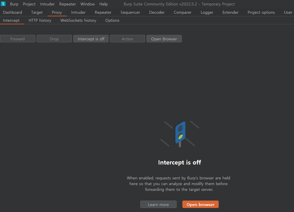 됐다. 다시 프록시를 설정하고 Intercept를 on했다.