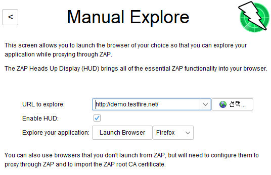Automated Scan은 뭔지도 모르고 돌리는 것 같으니까 Manual Explore(수동 탐색)을 선택했다. 그래야 공부가 된다.