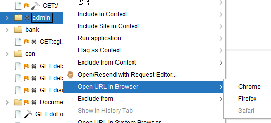 직접 URL에 입력할 필요 없이 ZAP에서 이동할 수도 있다.