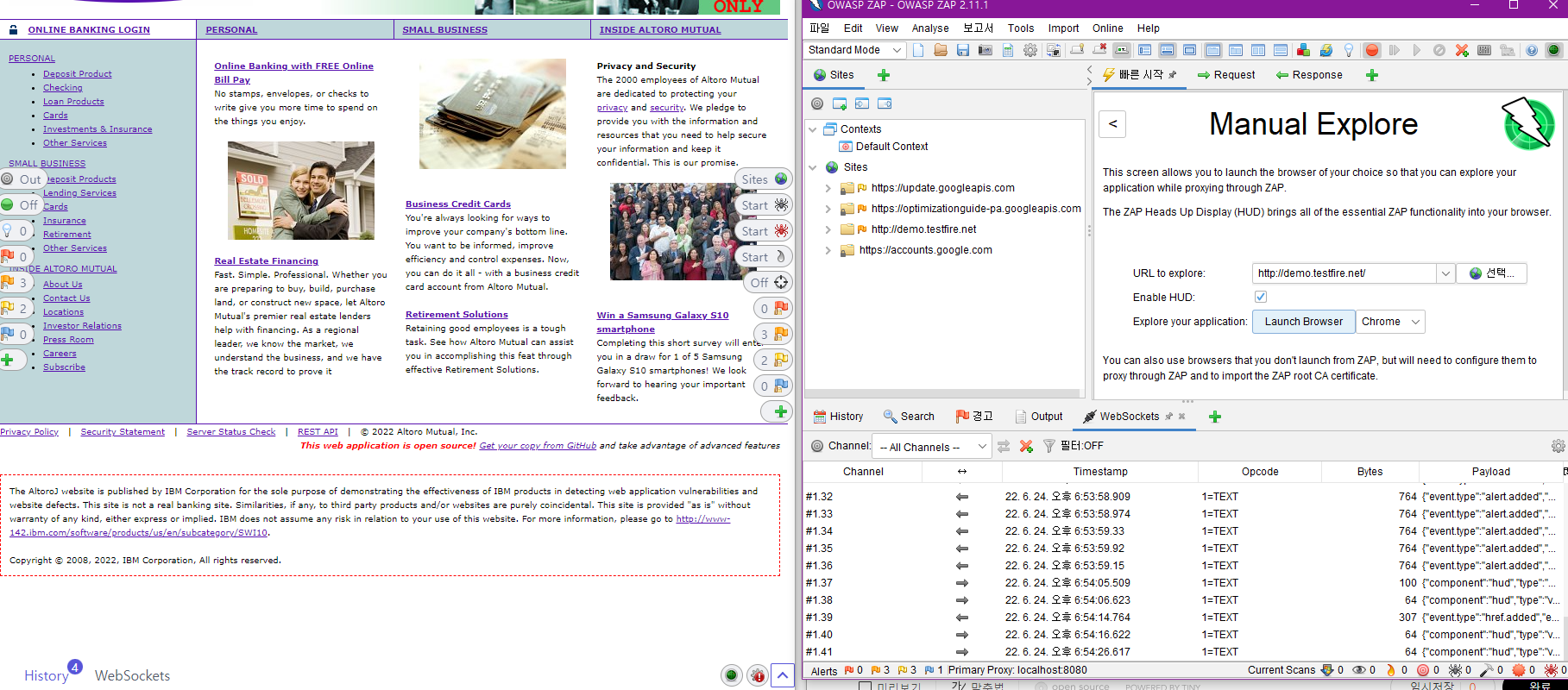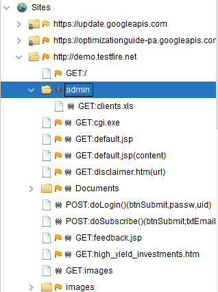 ZAP으로 demo.testfire.net의 clients.xls나 cgi.exe를 얻는 한국어 게시글은 찾아볼 수 없었다.