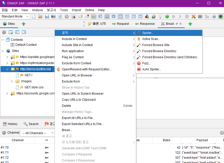 OWASP-ZAP으로 돌아올 필요 없이 웹브라우저를 보는 상태에서도 다양한 기능을 수행할 수 있는 것이다.